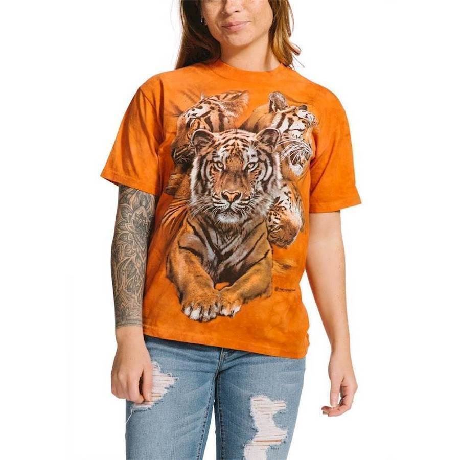 T-shirt med super flot tigercollage. Lækker kortærmet bluse med kemikaliefri indfarvet motiv af tigre der ligger og hviler.
