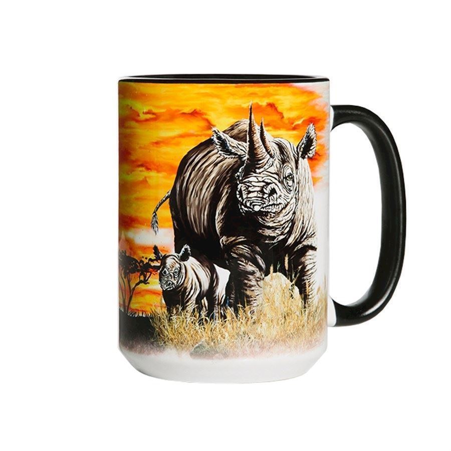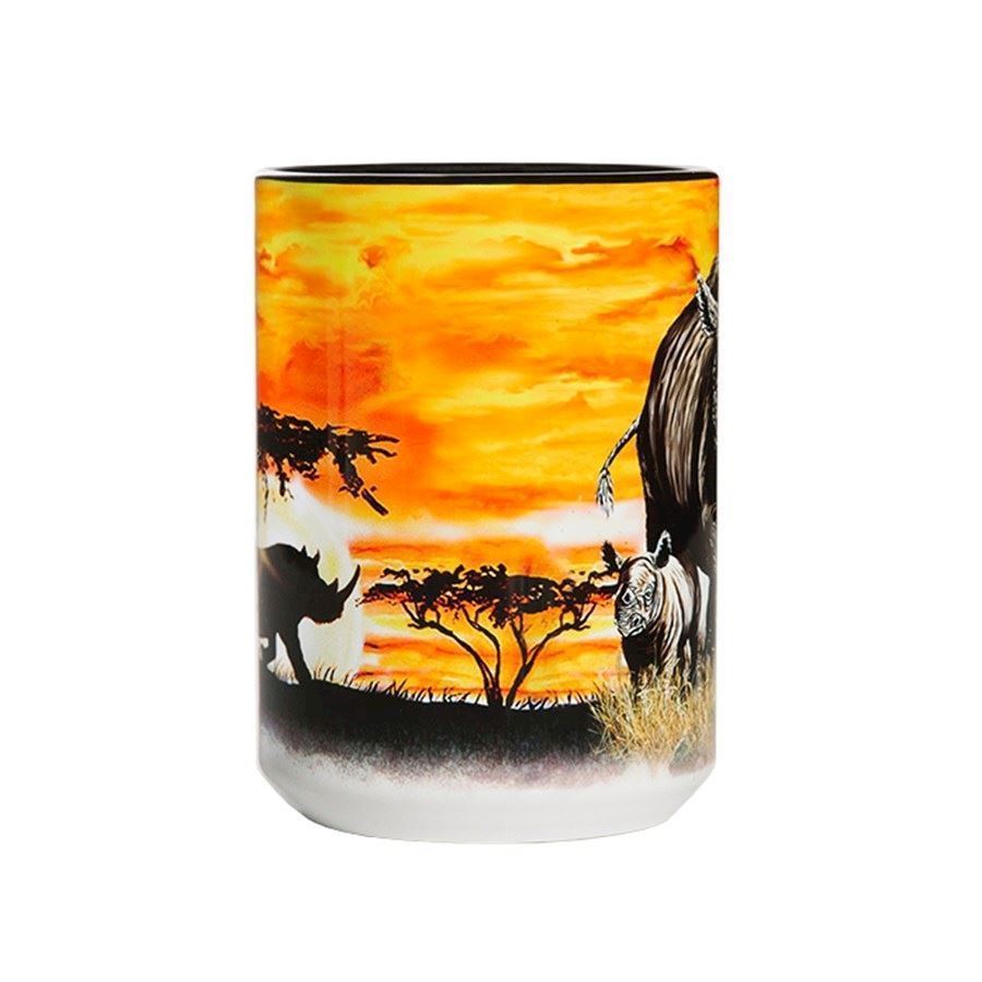 kaffekrus med næsehornKeramik Thekrus med næsehorn i solnedgangen lys