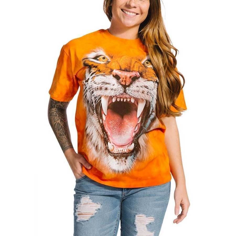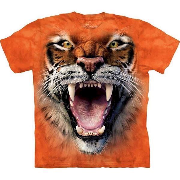T-shirt med brølende tiger. Super flot kortærmet bluse med kemikaliefri indfarvet motiv af vred tiger.
