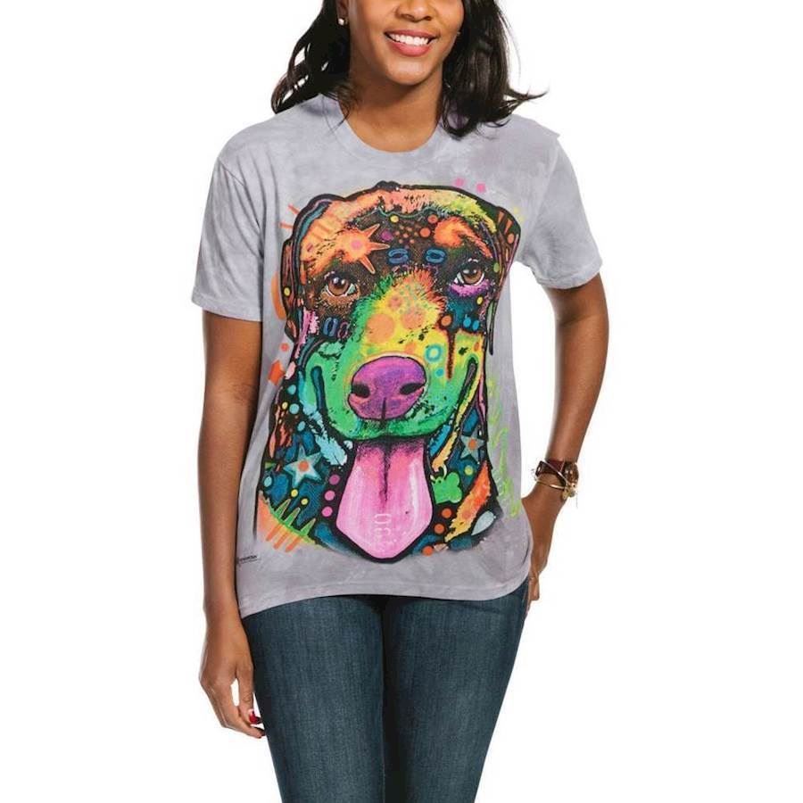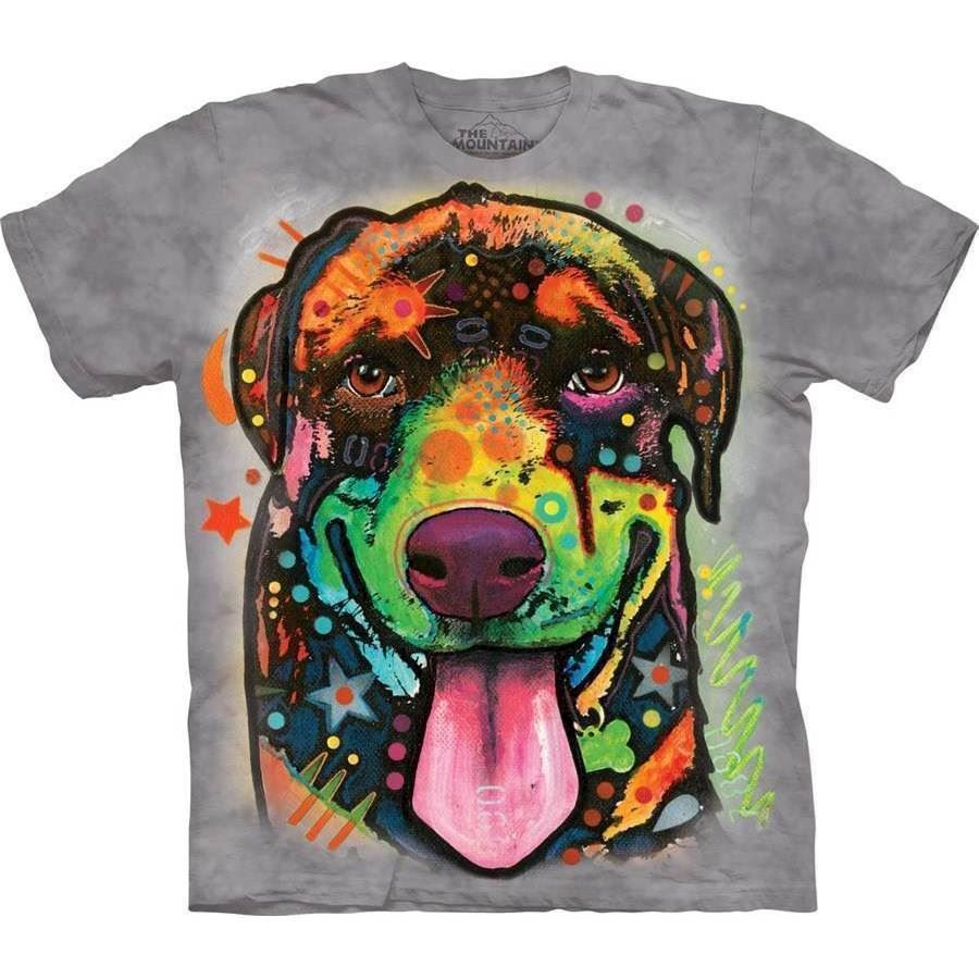 T-shirt med kunstnerisk illustration af Rottweilermotiv. Kortærmet bluse med Dean Russo motiv af en Rottweiler.