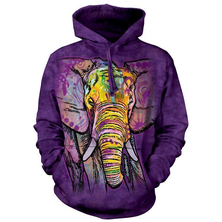 Hvis du elsker farver er dette lige dig! Elefanten er udarbejdet i farver og hele hættetrøjen er produceret i en dejlig og flot lilla farve. Passer perfekt til et par sorte bukser.