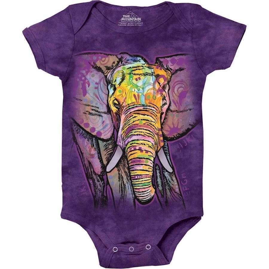 Lækker baby body med elefant i blød bomuld med kemikaliefri indfarvet motiv.