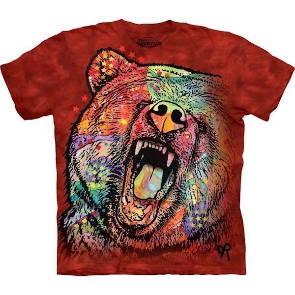 Dean Russo t-shirt med bjørnemotiv. Aggressivt rød farve med grizzlybjørn.
