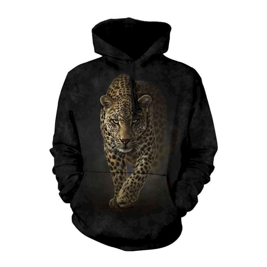 Hættetrøje i kraftig kvalitet med til dato det mest fantastiske leopard motiv. Sweatshirt med hætte til den miljøbevidste med kemikalie frie motiver.
