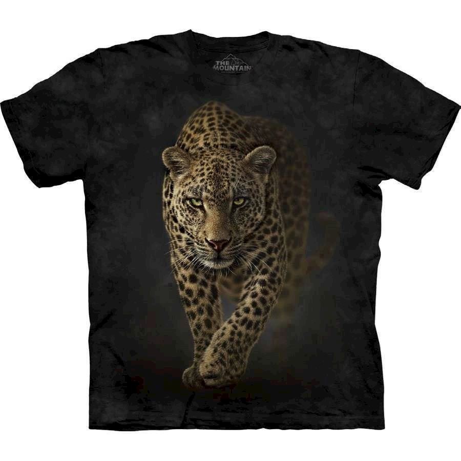 Sort t-shirt med leopard. Dramatisk og flot kattemotiv.