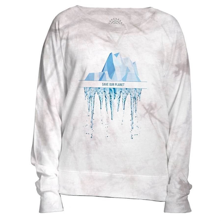 Sweatshirt i kvindemodel med bådformet hals. Til de knap så varme dage i Danmark har vi også langærmede bluser, som du kan få med de smukkeste motiver. Her ses f.eks. en med et budskab om at redde vores planet.