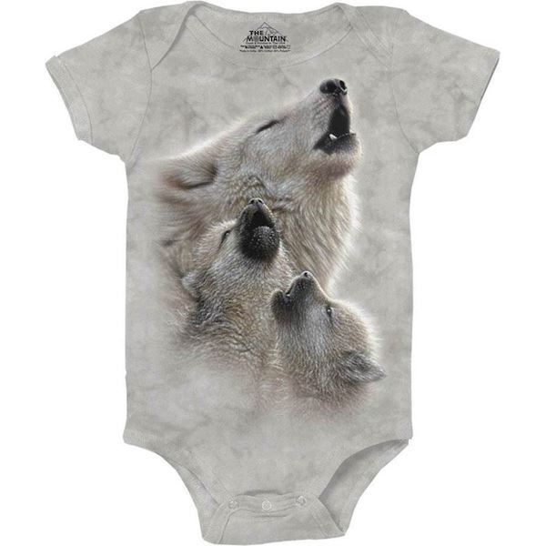 Naturen er forunderlig... Her ses en ulvemor, der lærer sine hvalpe at hyle mod månen - bodystocking i blød bomuld med kemikaliefri indfarvet motiv.