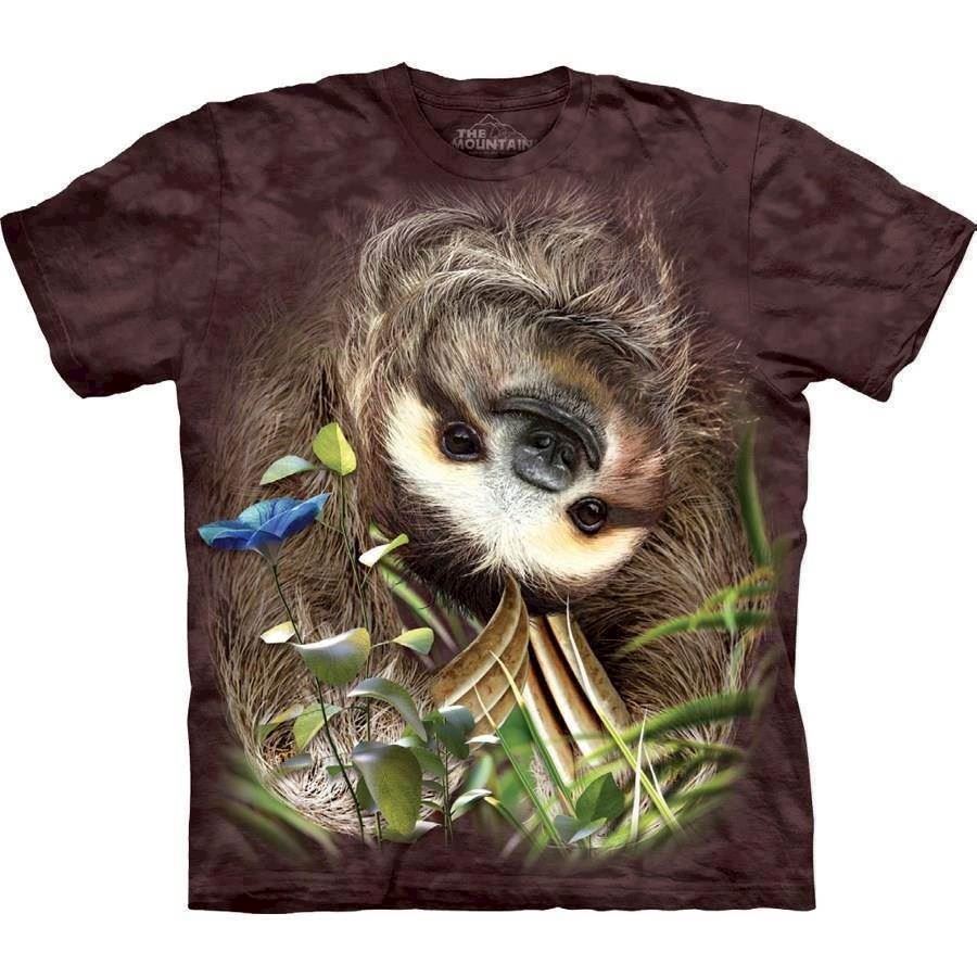 T-shirt med dovendyr på hovedet. Flot brunfarvet t-shirt i 100% bomuld, med et sødt motiv.