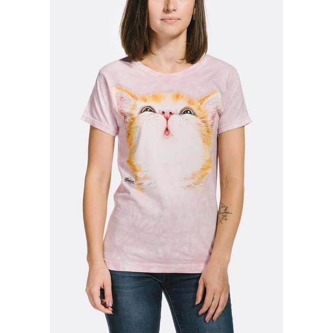 Faconsyet dame t-shirt med sød killing. Find en t-shirt med din helt egen katterace. Her ses en sød kysseklar kattekilling.