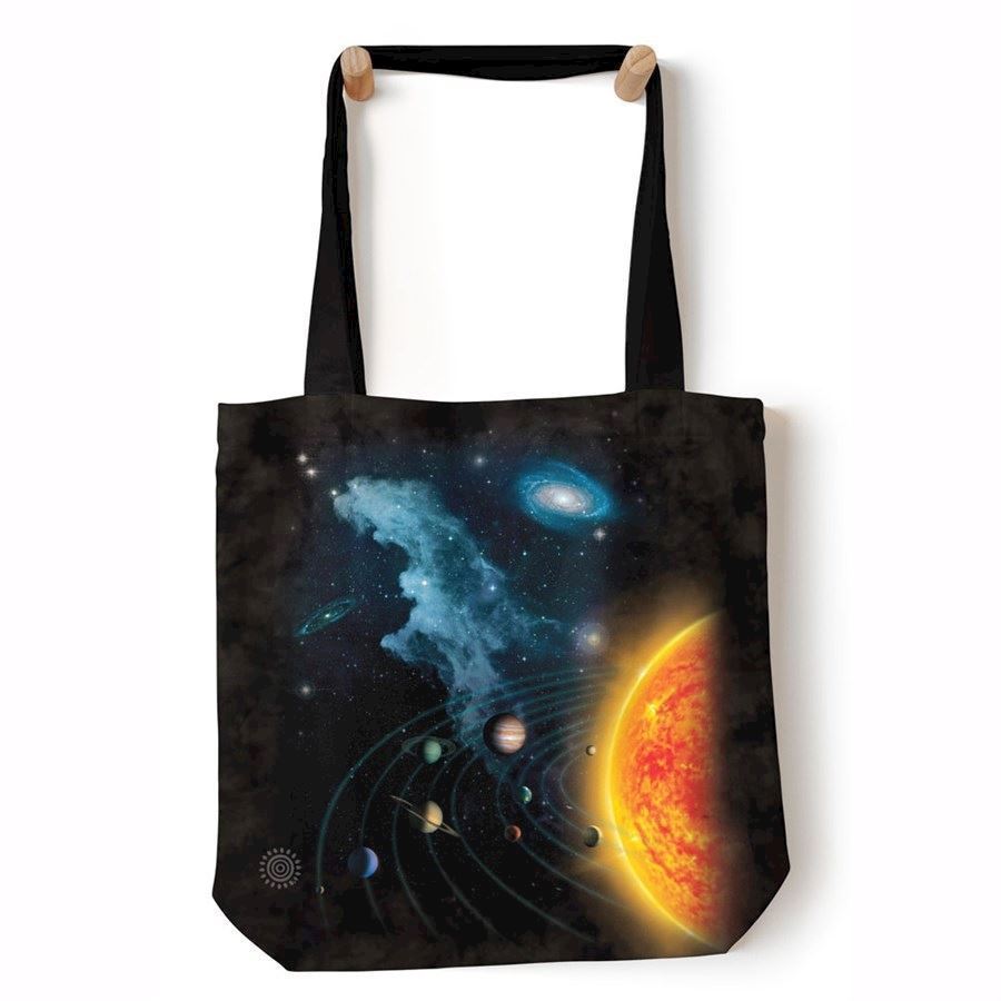 Ny Tote Bag fra The Mountain er en kraftig taske af ekstra stramt spundet polyester, med flotte farverige print på begge sider. Stropperne på skuldertasken er en bomuldsgjord på 2,5cm.