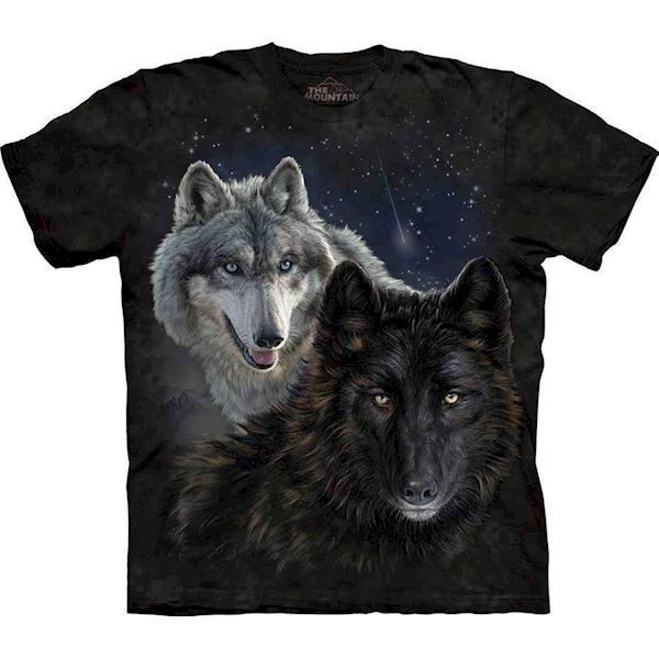 Sort t-shirt med sort og hvid ulv. Baggrunden er spækket med stjerner og stjerneskud. Flot ulveprint, og sort passer til alt.
