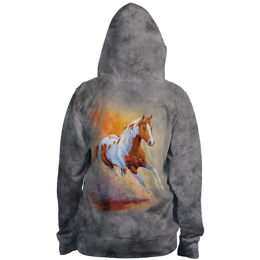 Dette er hoodien alle heste interesserede bare MÅ eje. Super flot rødbroget hest, der galoperer i solnedgangen pryder hele ryggen på denne zip hoodie.