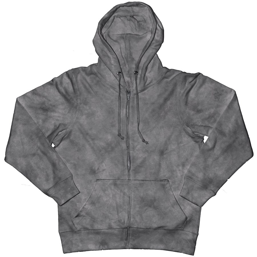 Varm, halvtyk hættetrøje med gennemgående lynlås.Superblød jersey-foret hætte og frontlommer. Ribkant i livet og i ærmekanter.  Dejligt afslappende pasform. Super holdbart økologisk indfarvet motiv fra The Mountain, der fylder hele ryggen.