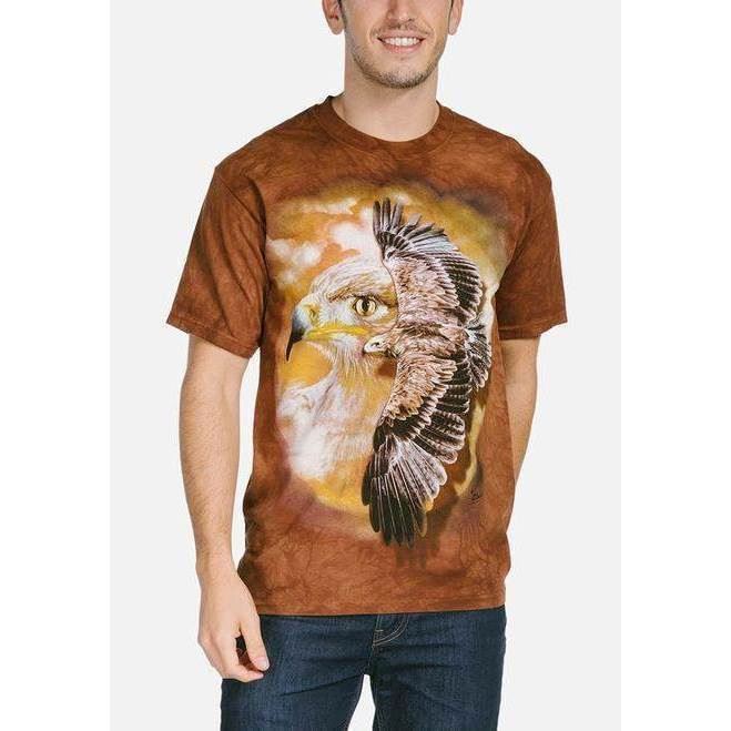 Ørnen kommer i mange forskellige størrelser og farver og de er ikke mindre smukke i den brunlige nuance. Denne t-shirt er dekoreret med et smukt ørnemotiv af en ørn med mørke og brunlige fjer.