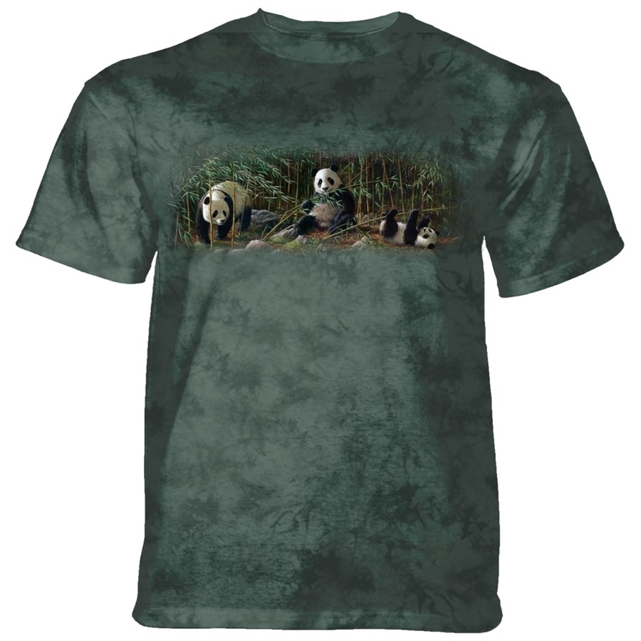 Super flot bomulds bluse med miljøvenligt tryk. Lækker t-shirt fra The Mountain med tre søde pandaer