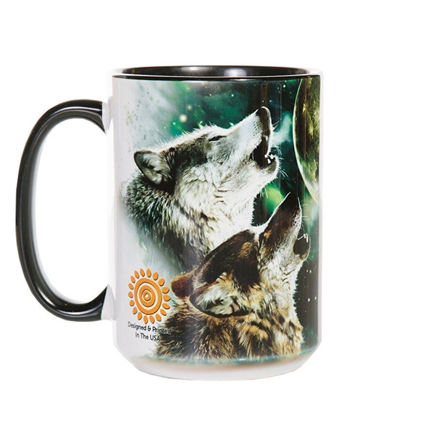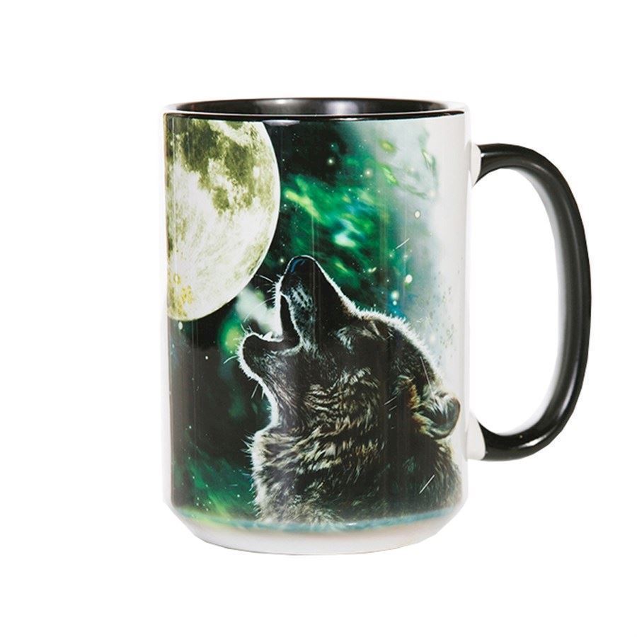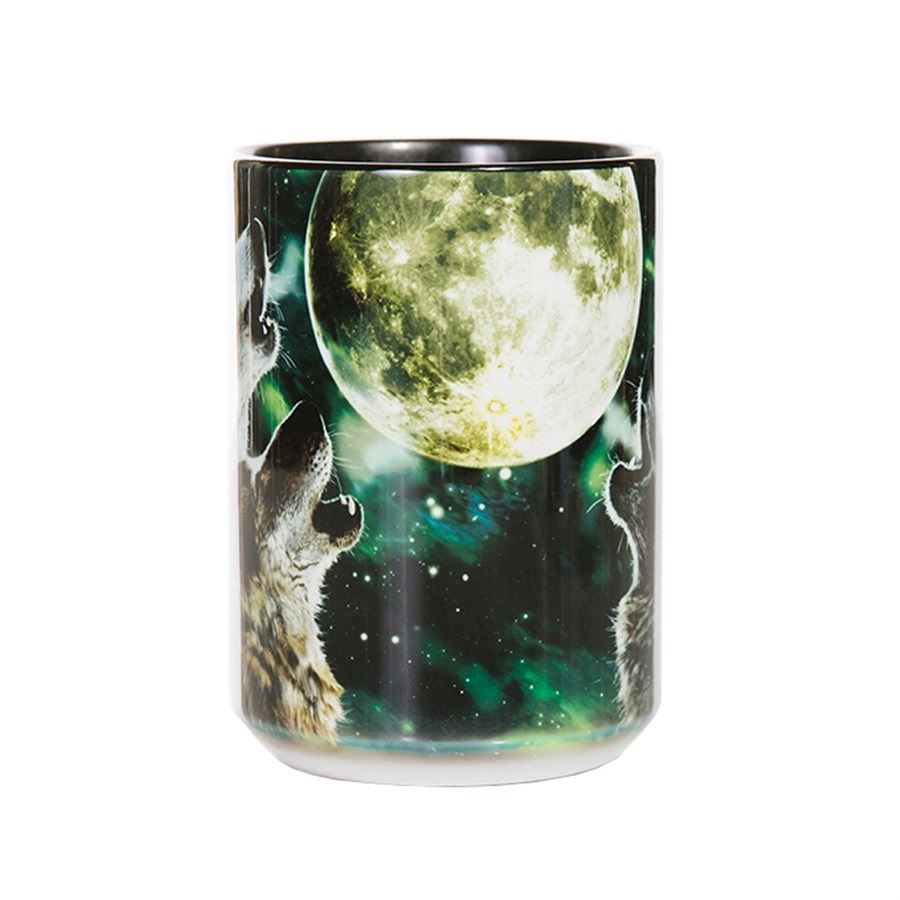 Kaffekrus med ulve der hyler mod månenTekrus med ulve