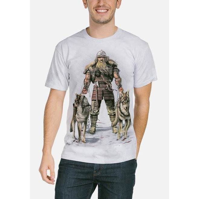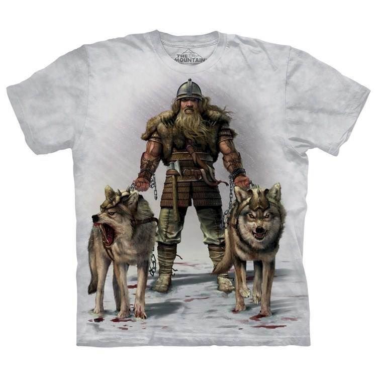 Et super sejt motiv af en viking, som beskyttes af sine to ulve. Er du vild med vikinger og ulve, så er dette absolut en bluse, som du skal have til dit klædeskab!