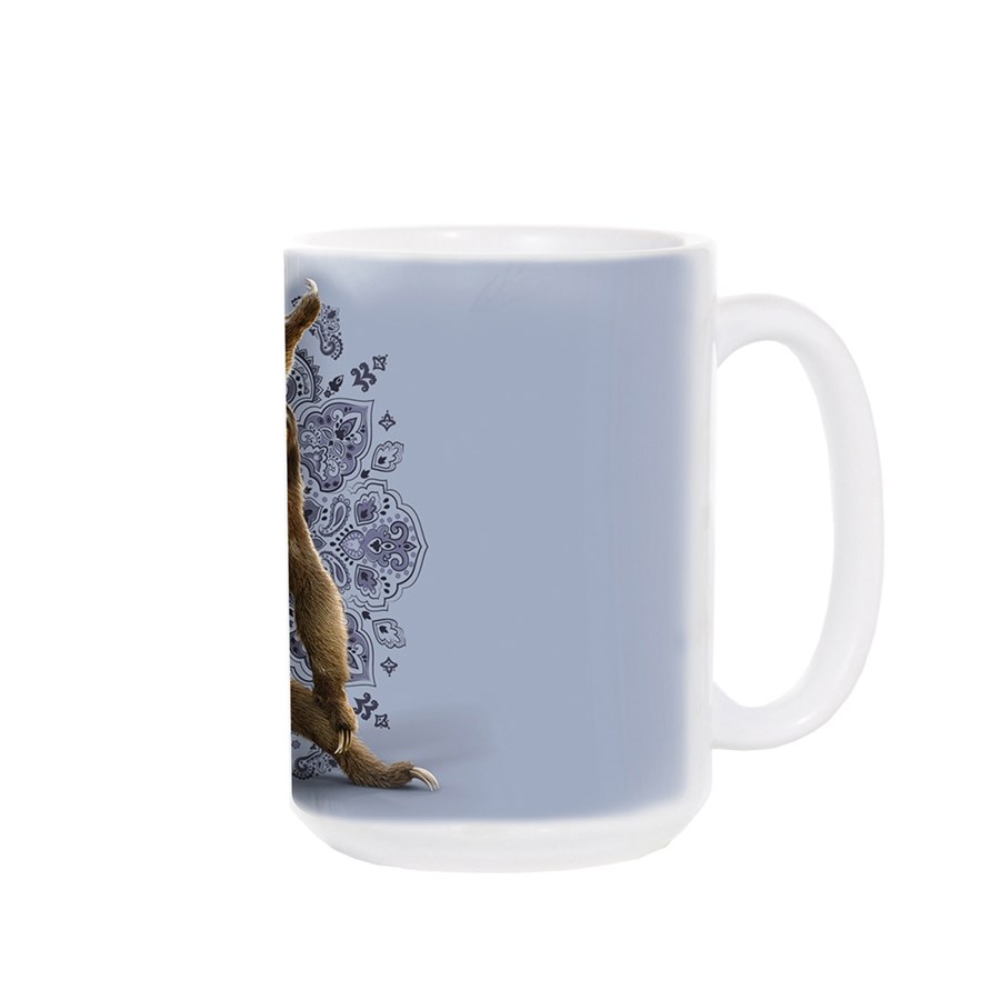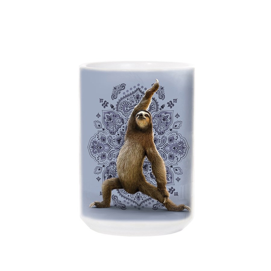 Dette krus har et imponerende motiv med et dovendyr der dyrker yoga.