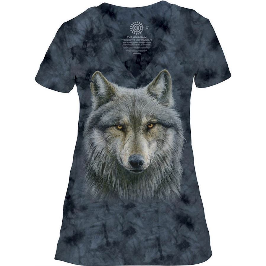 T-shirt med alvorlig alfa ulv. Ny T-shirt model til kvinder med super pasform og v-hals, der fremhæver de kvindelige former. Kortærmede damebluser med masser af magi og flotte dyremotiver.