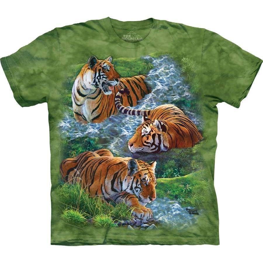 T-shirt med tigere, der bader. Ikke alle katte undgår vand. Tigere elsker det, og er gode svømmere. Unge tigere kan ofte bruge meget tid på at lege i vand.