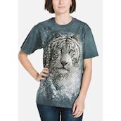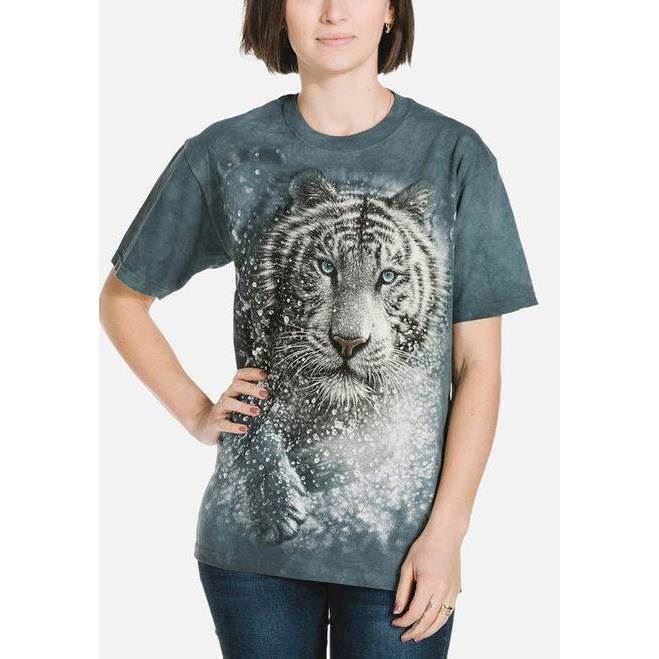 De fleste tigere kan godt lide vand og dette motiv har fanget et smukt billede af en hvid tiger, som løber igennem vandet. Blusen er lavet af en neutral farve og passer derfor til alt.