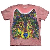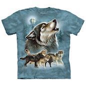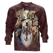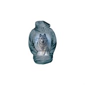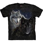 Trøje med dramatisk ulve-motiv. Lyset møder mørket, og ulven er i midten. Flot mørk bluse med farverigt motiv.