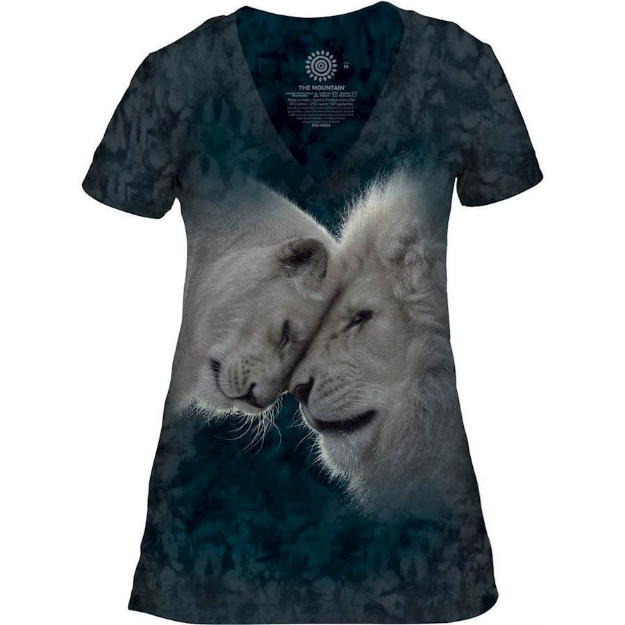 Kærlighed løver imellem kan se så smukt ud. Ny T-shirt model til kvinder med super pasform og v-hals, der fremhæver de kvindelige former. Kortærmede damebluser med masser af magi og flotte dyremotiver.