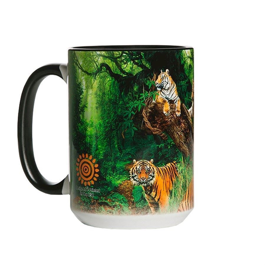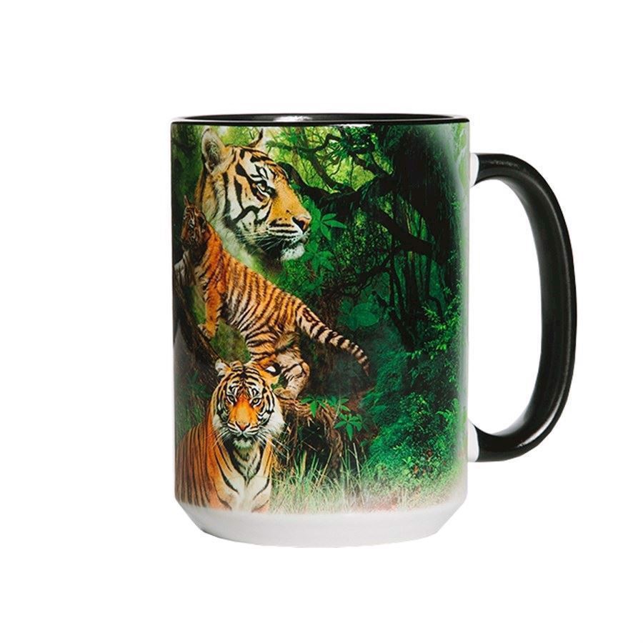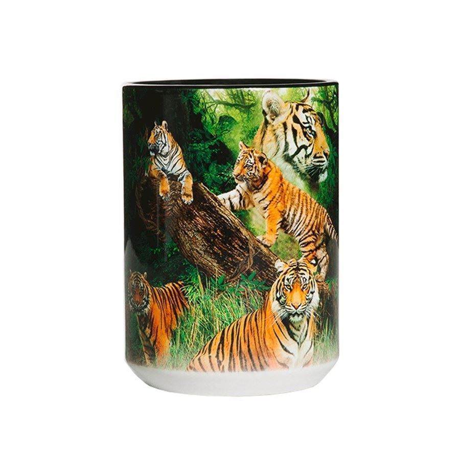 kaffekrus med vilde tigreTekrus med collage af tigere
