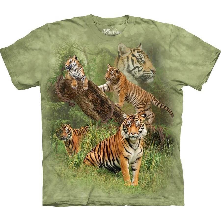 T-shirt med naturlig og flot tigercollage. Lækker kortærmet bluse med kemikaliefri indfarvet motiv af tigre i naturen.