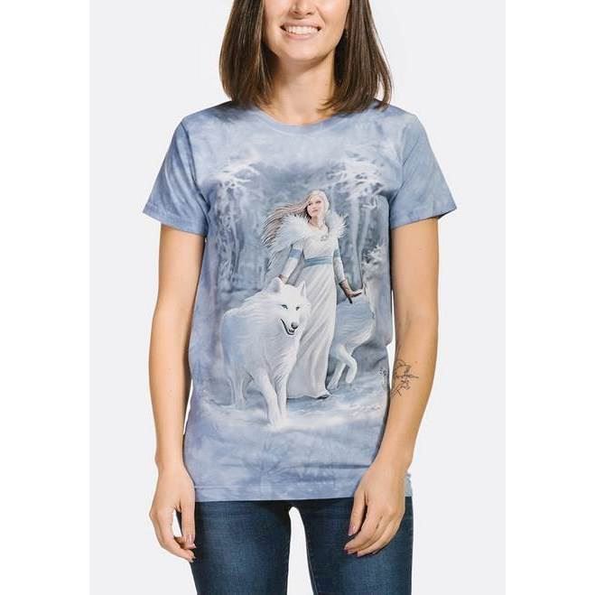 T-shirt med smuk snedronning med sine 2 snehvide hunde. Eventyrlig smuk faconsyet dame bluse med korte ærmer.