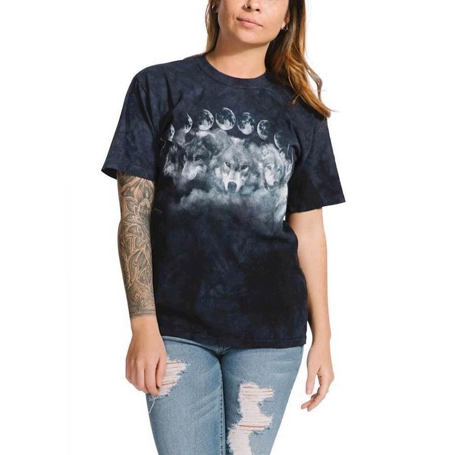 T-shirt med en ulveflok. Kortærmet bluse med dynamisk billede af ulve i flok.