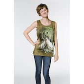 Superflot grøn tank-top med motivtryk af træ med grene i yin-yang-symbolets form. Lækkert og spirituelt motiv, og den rolige grønne farve passer til hvadsomhelst.