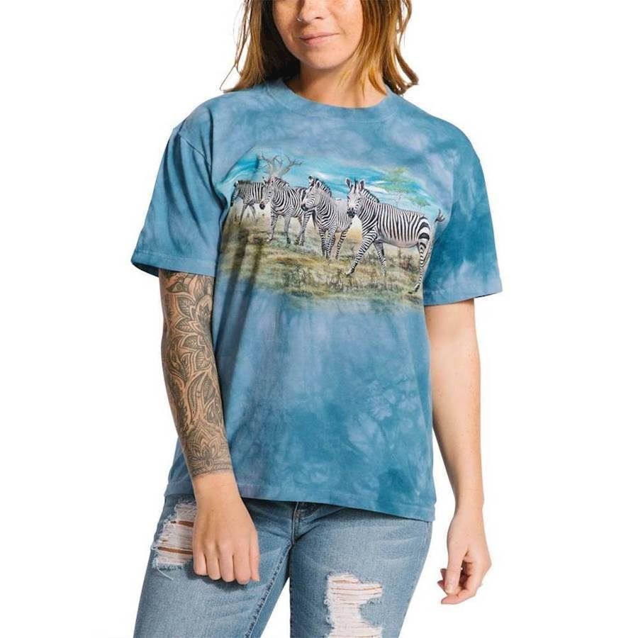 T-shirt med zebra. Den afrikanske hest med striber synes at være iøjefaldende, men dens striber gør det faktisk svært for rovdyr at bestemme hvor langt væk zebraen er, og hvad retning den vender. Hvis mange zebraer er i flok, kan det være svært for en løve at se andet end striber, så de har problemer med at vælge et dyr at jage.